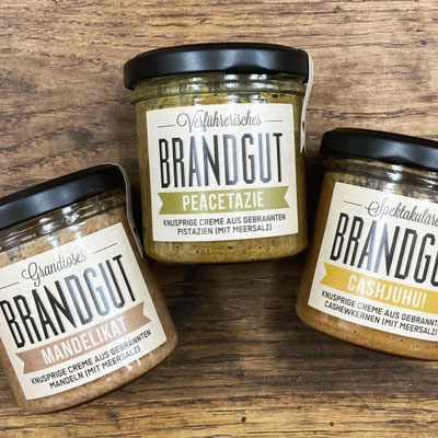 Die nordische Firma BRANDGUT hat uns mit Ihren naturbelassenen Brotaufstrichen mit gebrannten Nüssen sofort begeistert. Die köstlichen Brotaufstriche werden mit einem hohen Nussanteil und