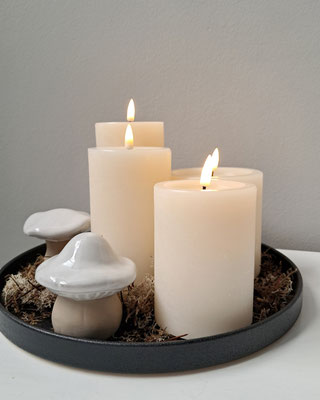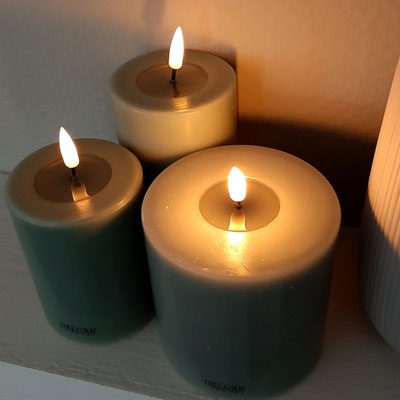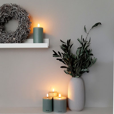 Und unsere neuen LED Kerzen aus echtem Wachs mit ihrem echt aussehenden Wachsspiegel sehen nicht nur schön aus, sondern können dort zum Einsatz kommen, wo eine echte Kerze nicht erwünscht ist.